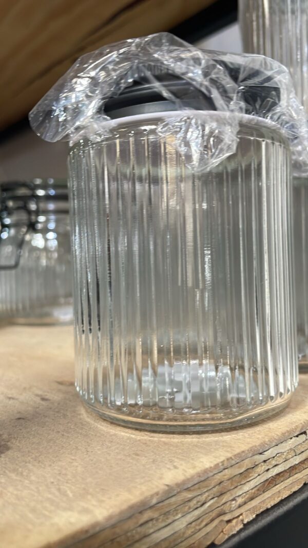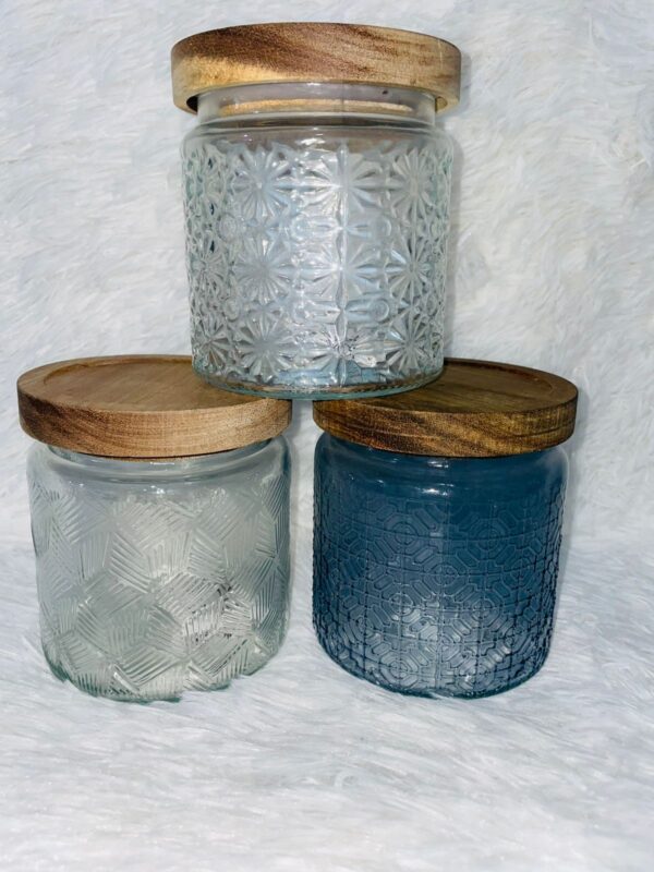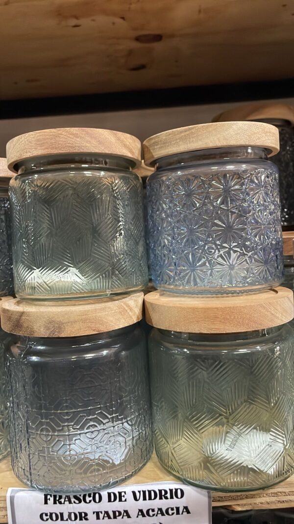 FRASCO DE VIDRIO LABRADO RED TAPA ACACIA