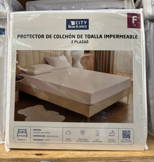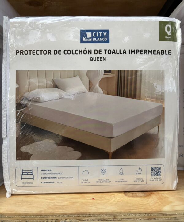 PROTECTOR DE COLCHÓN DE TOALLA IMPERMEABLE QUEEN (160x200x35CM APROX)